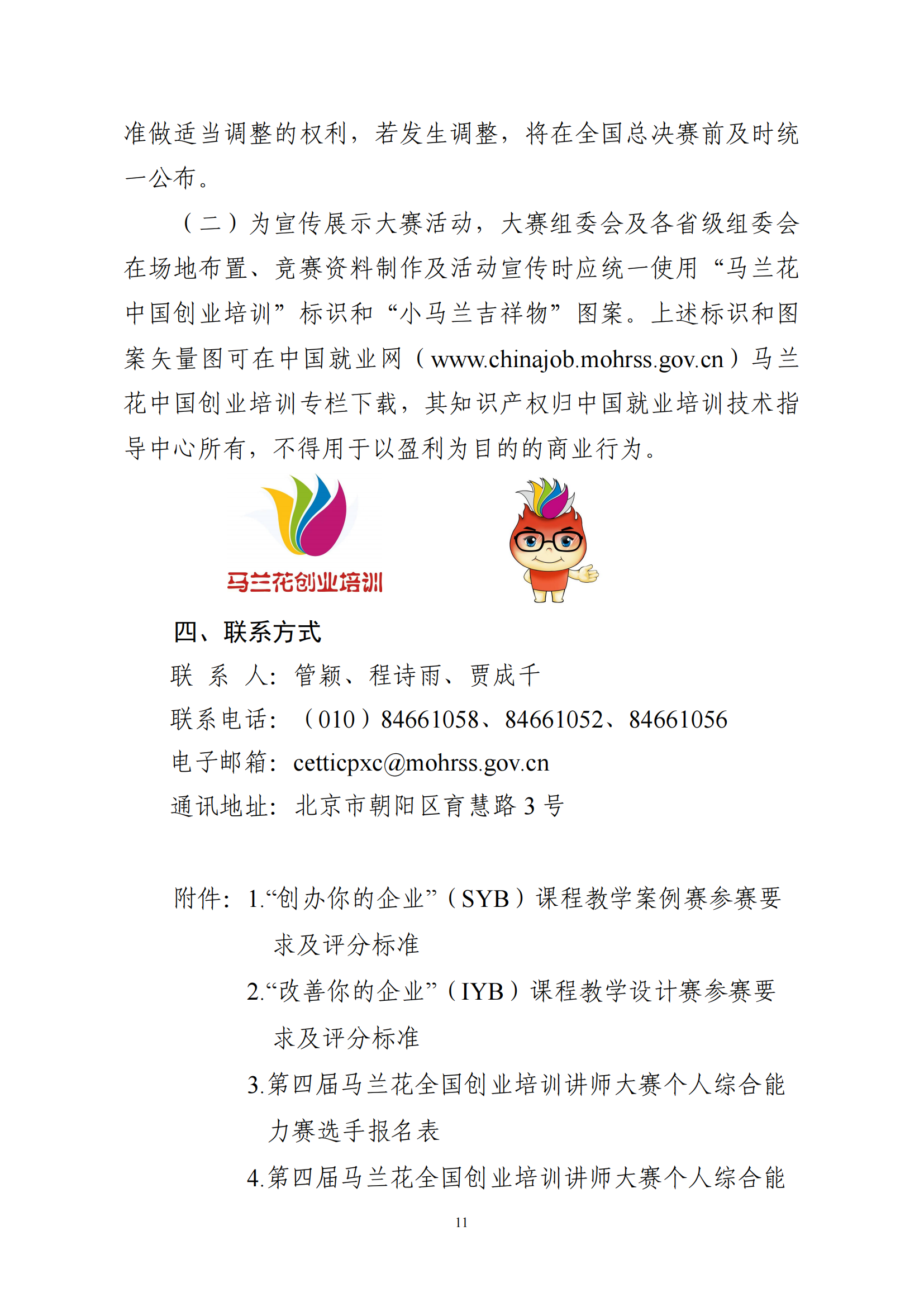 关于印发第四届马兰花全国创业培训讲师大赛技术文件的通知